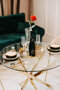 -luksusowy, modny i przytulny salon z aksamitną welurową sofą