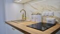 -kompletnie wyposażona kuchnia z jadalnią (lodówka, płyta indukcyjna, czajnik i niezbędne