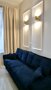 -luksusowy, modny i przytulny salon z aksamitną welurową sofą